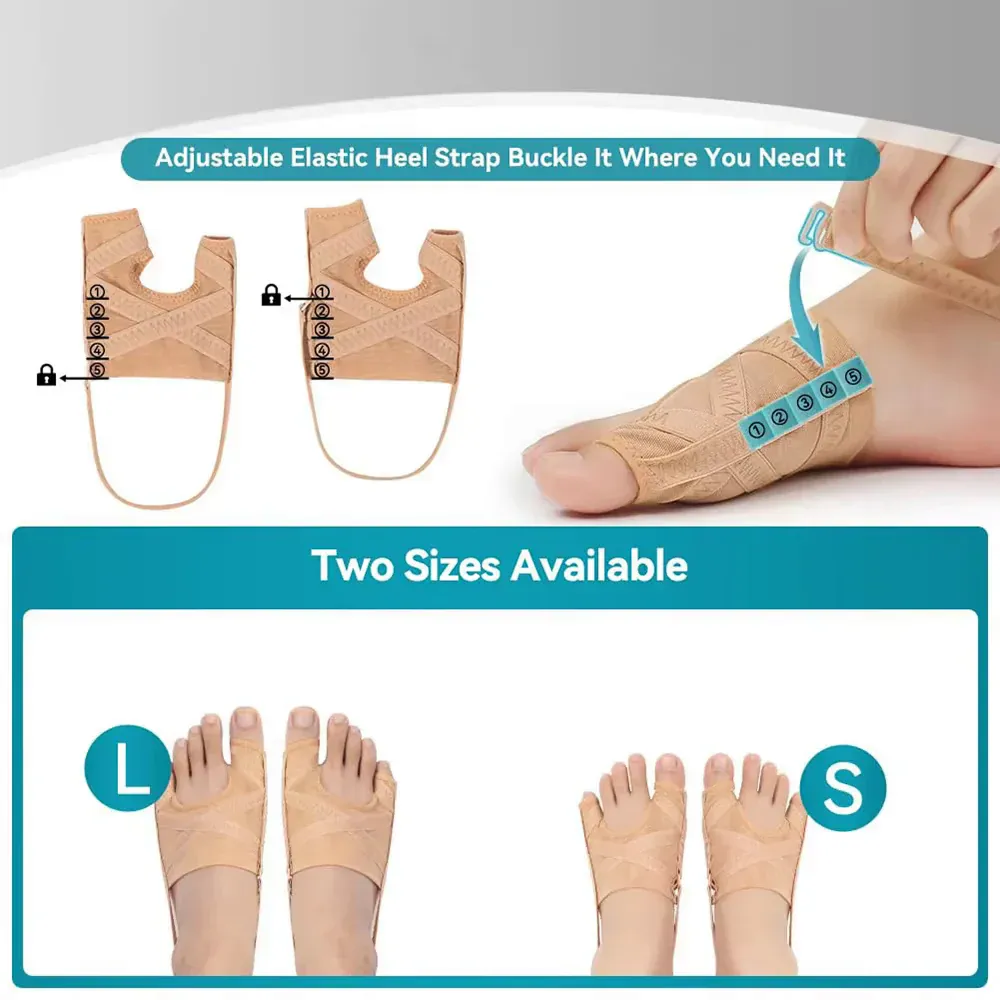 Each pair of toe correctors comes in two sizes and features five adjustable buckles, allowing you to easily tailor the fit for maximum comfort. The Adjustable Elastic Strap ensures a secure and personalized fit, so you can wear it comfortably all day long.